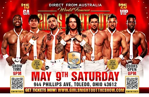 GIRLS NIGHT OUT Live Australia WORLD TOUR is hitting Toledo ,Ohio for one night only! This is your chance to witness the Ultimate ,high energy ,jaw dropping,pulse-racing show LIVE!