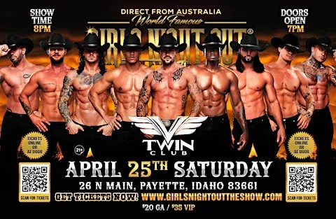 Girls Night Out the Show Australia WORLD TOUR is hitting Payette,Idaho for one night only!This is your chance to witness the Ultimate,high energy,jaw dropping,pulse-racing show LIVE!
