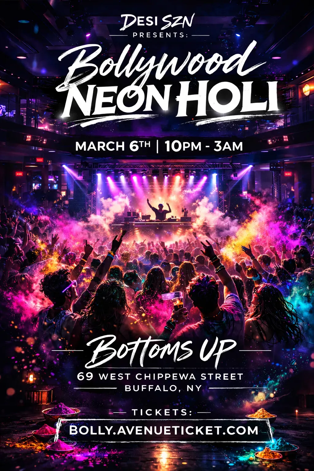 Buffalo, get ready for the most electrifying Holi celebration of the season β€” and this time, we’re taking it INDOORS for a full neon nightclub experience.