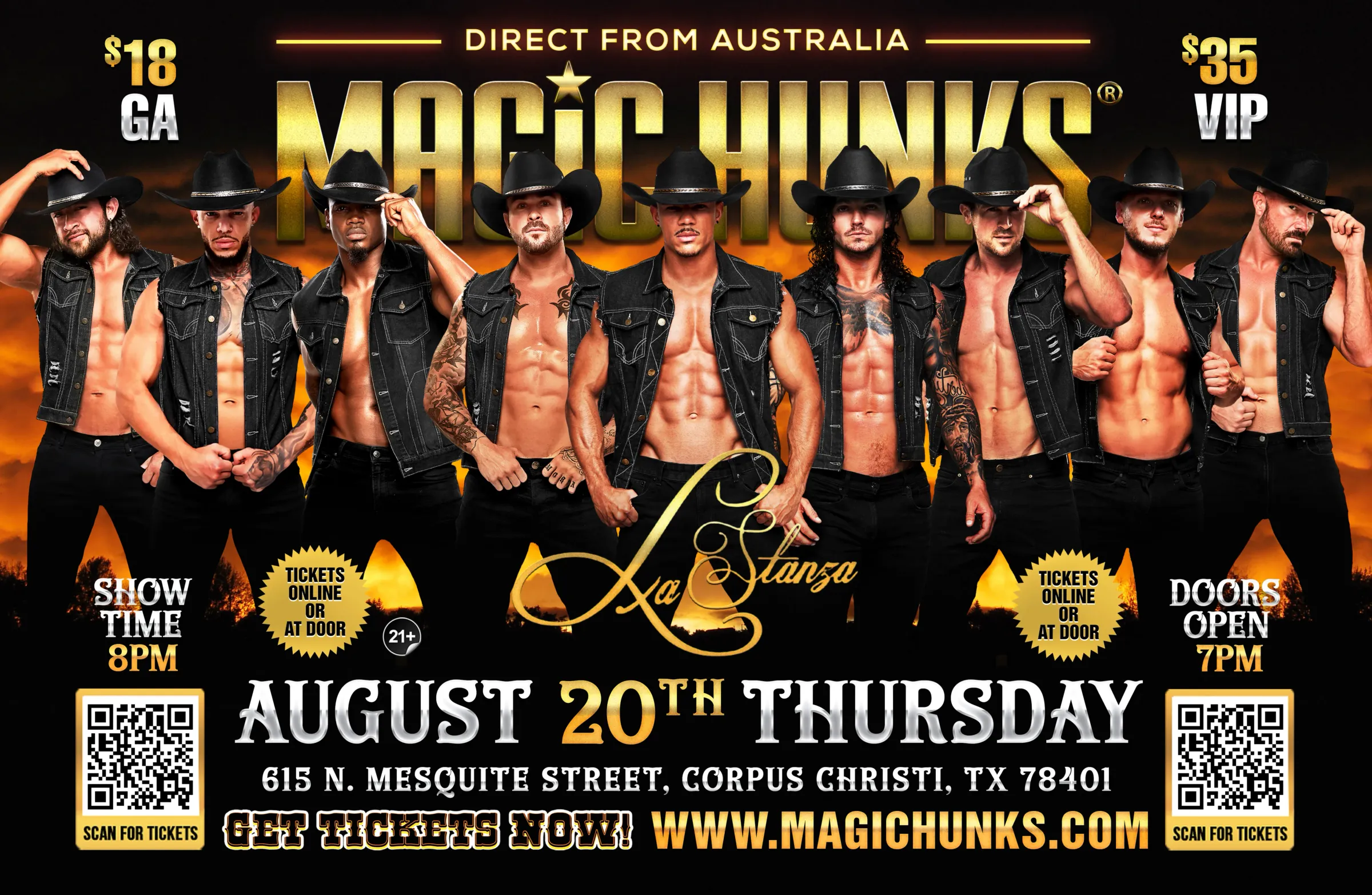 AUSTRALIA'S MAGIC HUNKS "WILD NIGHTS 2026" WORLD TOUR is hitting the stage at LA STANZA EVENT CENTER for one night only!!!