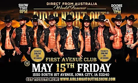 Australia's Ultimate Ladies Night Event Is Coming to Iowa City! Limited Tickets On Sale NOW! Open to Ages 18+ Doors open at 7pm