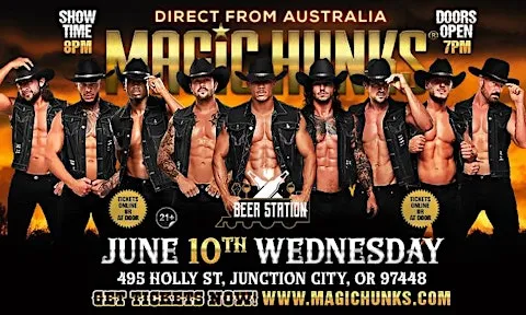 MAGIC HUNKS Live Australia WORLD TOUR is hitting Junction City,OR for one night only!This is your chance to witness the Ultimate,high