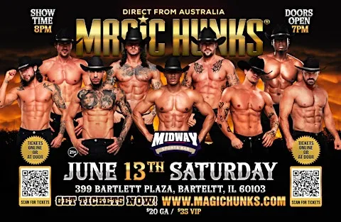 MAGIC HUNKS Live Australia WORLD TOUR is hitting Bartlett,IL for one night only!This is your chance to witness the Ultimate,high energy,jaw dropping,pulse-racing show LIVE!