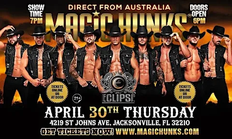 MAGIC HUNKS Live Australia WORLD TOUR is hitting Jacksonville,Florida for one night only!This is your chance to witness the Ultimate,high energy,jaw dropping,pulse-racing show LIVE!