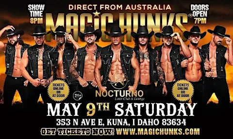 The Magic Hunks Australia WORLD TOUR is hitting Kuna, Idaho for one night only! This is your chance to witness the Ultimate, high energy, jaw dropping,pulse-racing show LIVE!