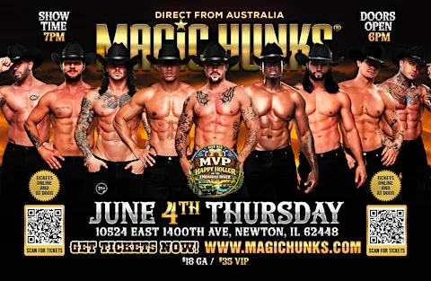 The Magic Hunks Australia WORLD TOUR is hitting Newton,IL for one night only!This is your chance to witness the Ultimate,high energy,jaw dropping,pulse-racing show LIVE!