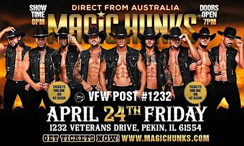 The Magic Hunks Australia WORLD TOUR is hitting Pekin,IL for one night only! This is your chance to witness the Ultimate ,high energy, jaw dropping,pulse-racing show LIVE!