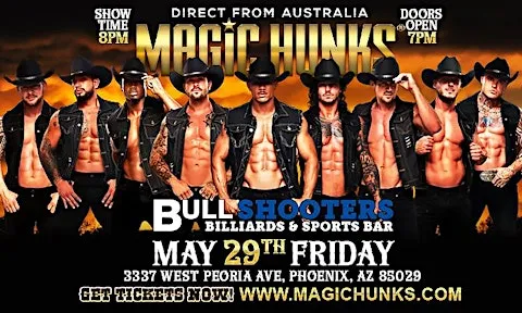 The Magic Hunks Australia WORLD TOUR is hitting Phoenix,AZ.This is your chance to witness the Ultimate,high energy,jaw dropping,pulse-racing male revue show LIVE!