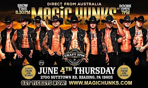 The Magic Hunks Australia WORLD TOUR is hitting Reading,PA for one night only!This is your chance to witness the Ultimate,high energy,jaw dropping,pulse-racing show LIVE!