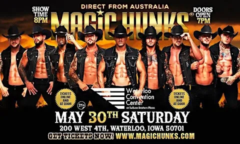 The Magic Hunks Australia WORLD TOUR is hitting Waterloo .IA for one night only! This is your chance to witness the Ultimate, high energy, jaw dropping,pulse-racing show LIVE!