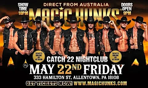 Australia's Biggest ladies night is taking over the stage at Catch 22 Nightclub on Friday May 22nd!! Catch the HUNKS for a breath-taking performance like none other!