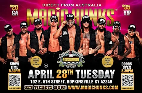 MAGIC HUNKS Live Australia WORLD TOUR is hitting Hopkinsville, KY for one night only! This is your chance to witness the Ultimate, high energy ,jaw dropping,pulse-racing show LIVE!