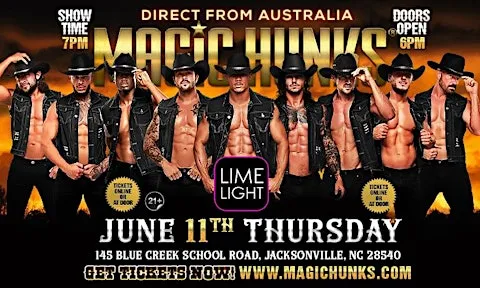 MAGIC HUNKS Live Australia WORLD TOUR is hitting Jacksonville, NC for one night only!This is your chance to witness the Ultimate,high energy,jaw dropping,pulse-racing show LIVE!