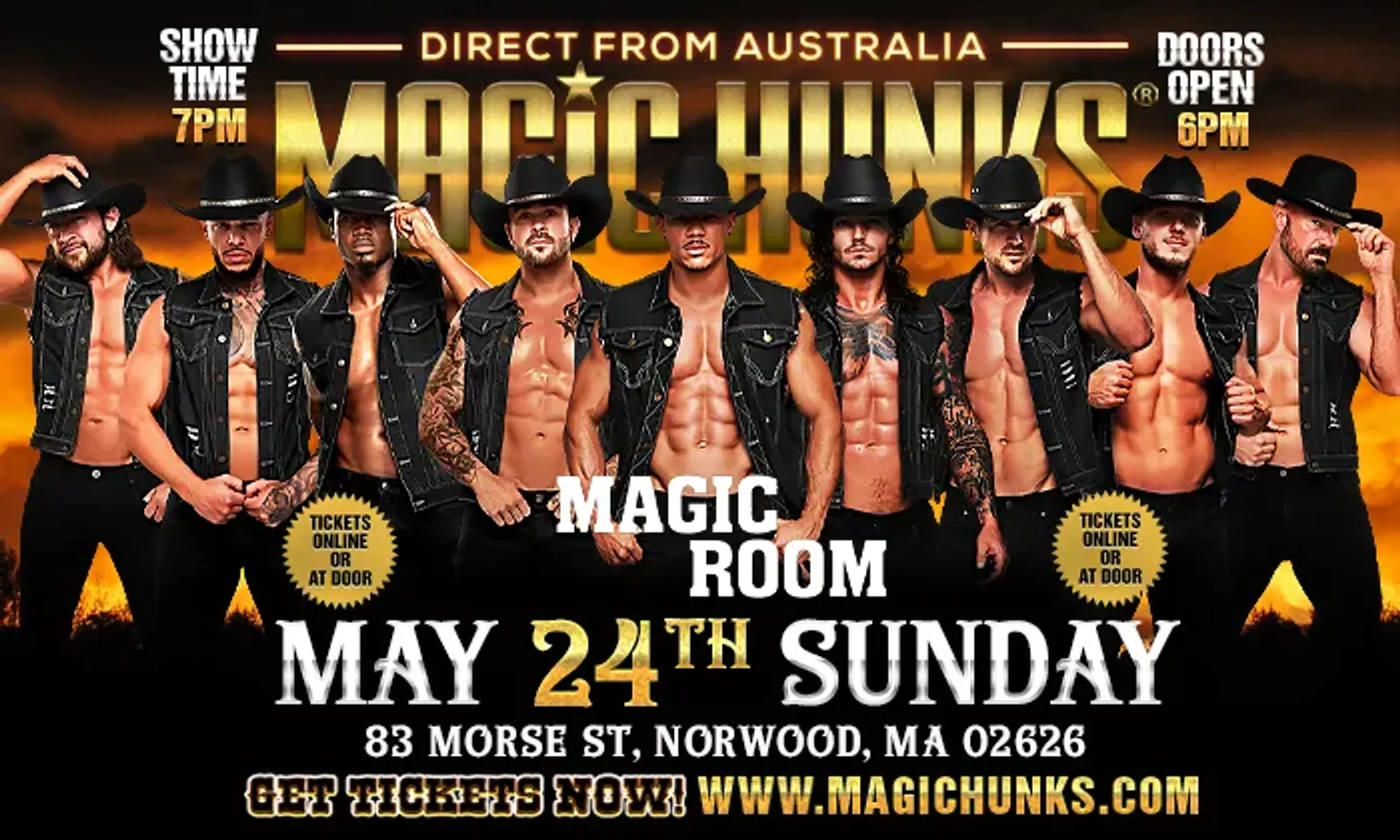 MAGIC HUNKS Live Australia WORLD TOUR is hitting Norwood, MA for one night only!This is your chance to witness the Ultimate,high energy,jaw dropping,pulse-racing show LIVE!