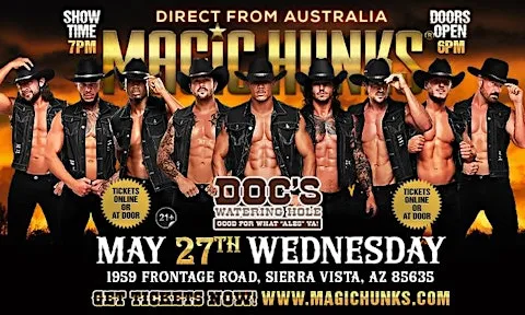 Australia's Biggest ladies night is taking over the stage at Doc's Watering Hole on Wednesday May 27th!! Catch the HUNKS for a breath-taking performance like none other!
