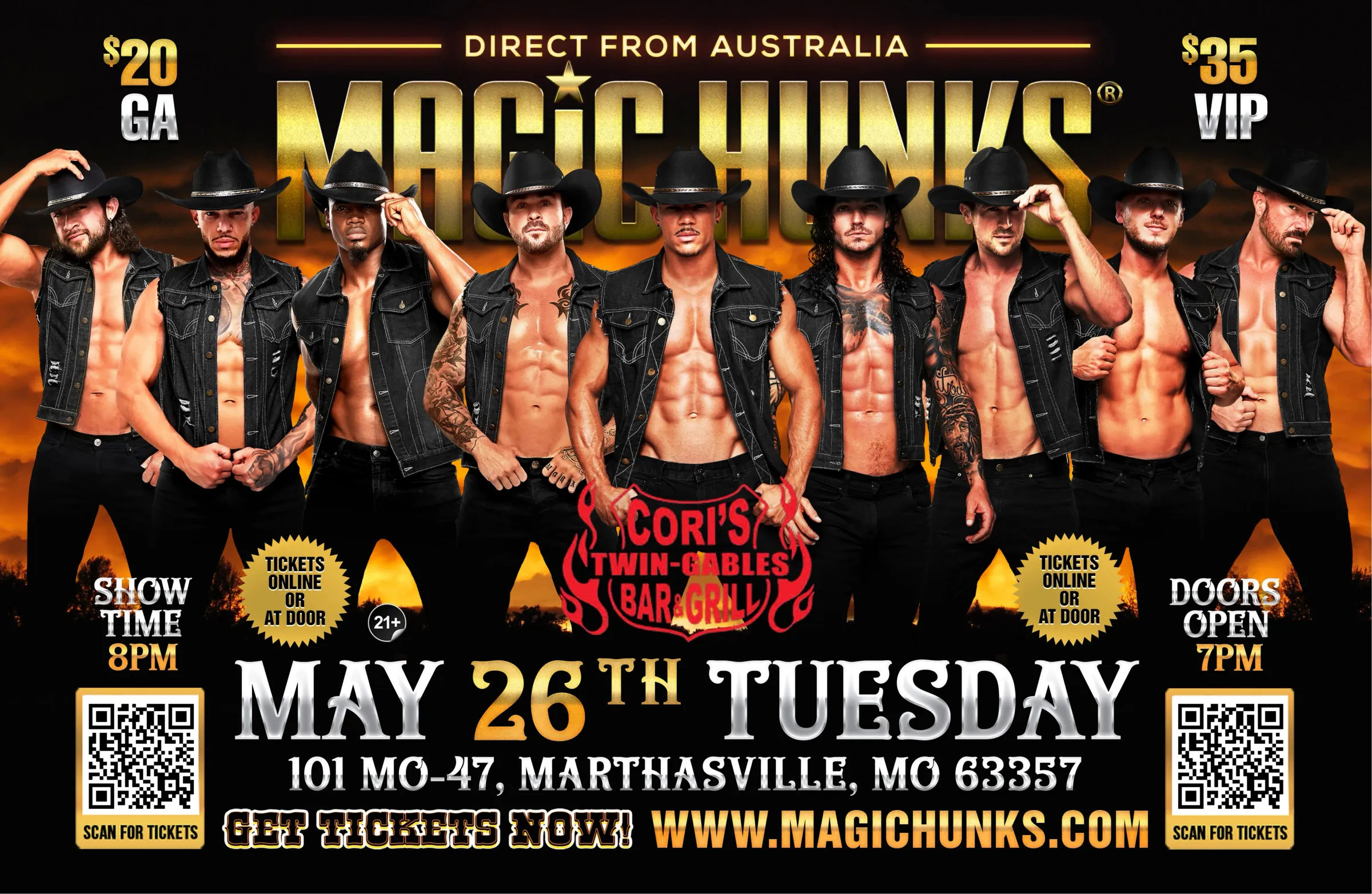 MAGIC HUNKS Live Australia WORLD TOUR is hitting Marthasville for one night only! This is your chance to witness the Ultimate, high energy, jaw dropping,pulse-racing show LIVE!