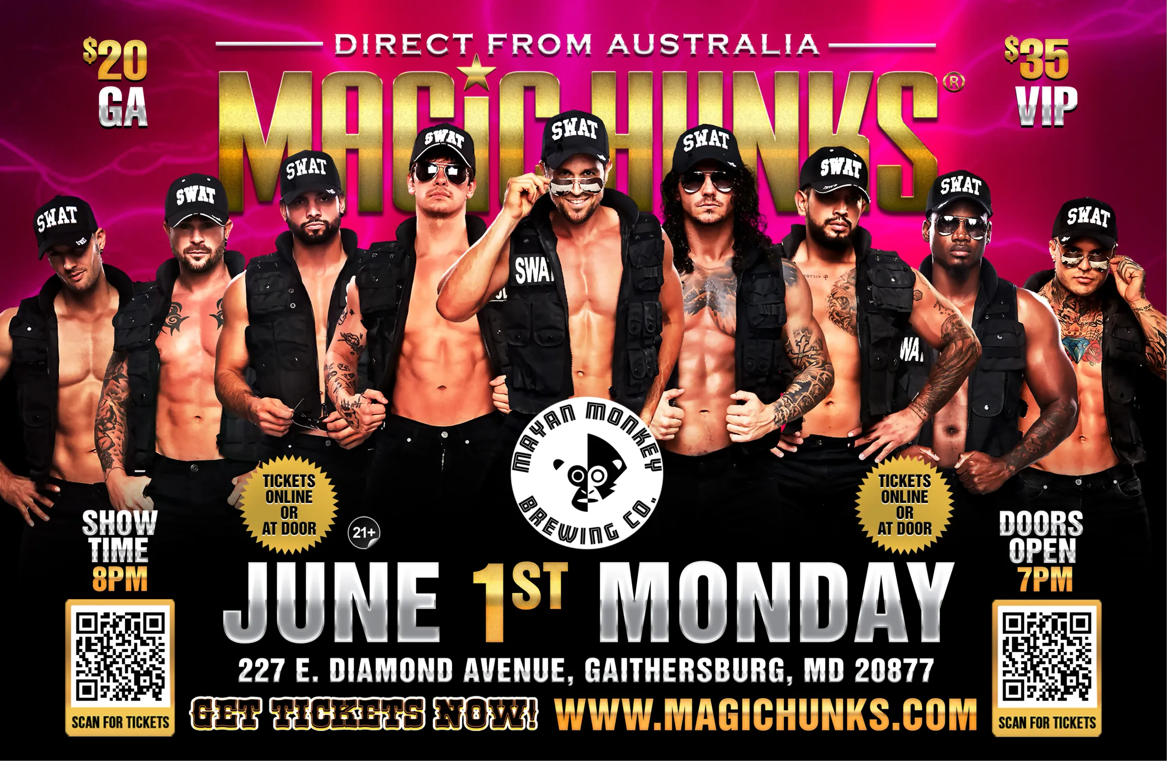 AUSTRALIA'S MAGIC HUNKS WORLD TOUR is hitting the stage at Mayan Monkey Brewing Co. on Monday June 1st for one night Only!!