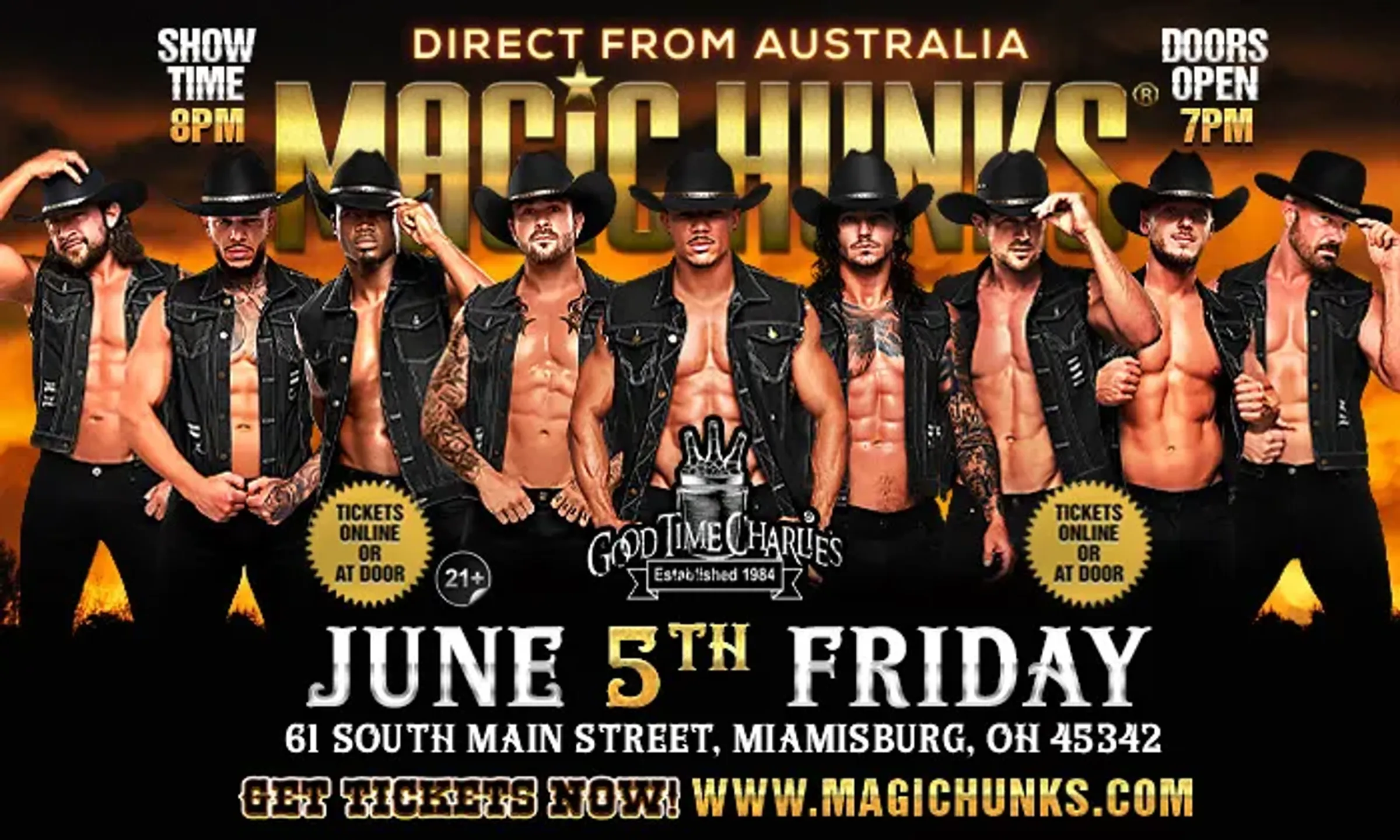 AUSTRALIA'S MAGIC HUNKS "WILD NIGHTS 2026" WORLD TOUR is hitting the stage at Good Time Charlie's on Friday June 5th for one night Only!!