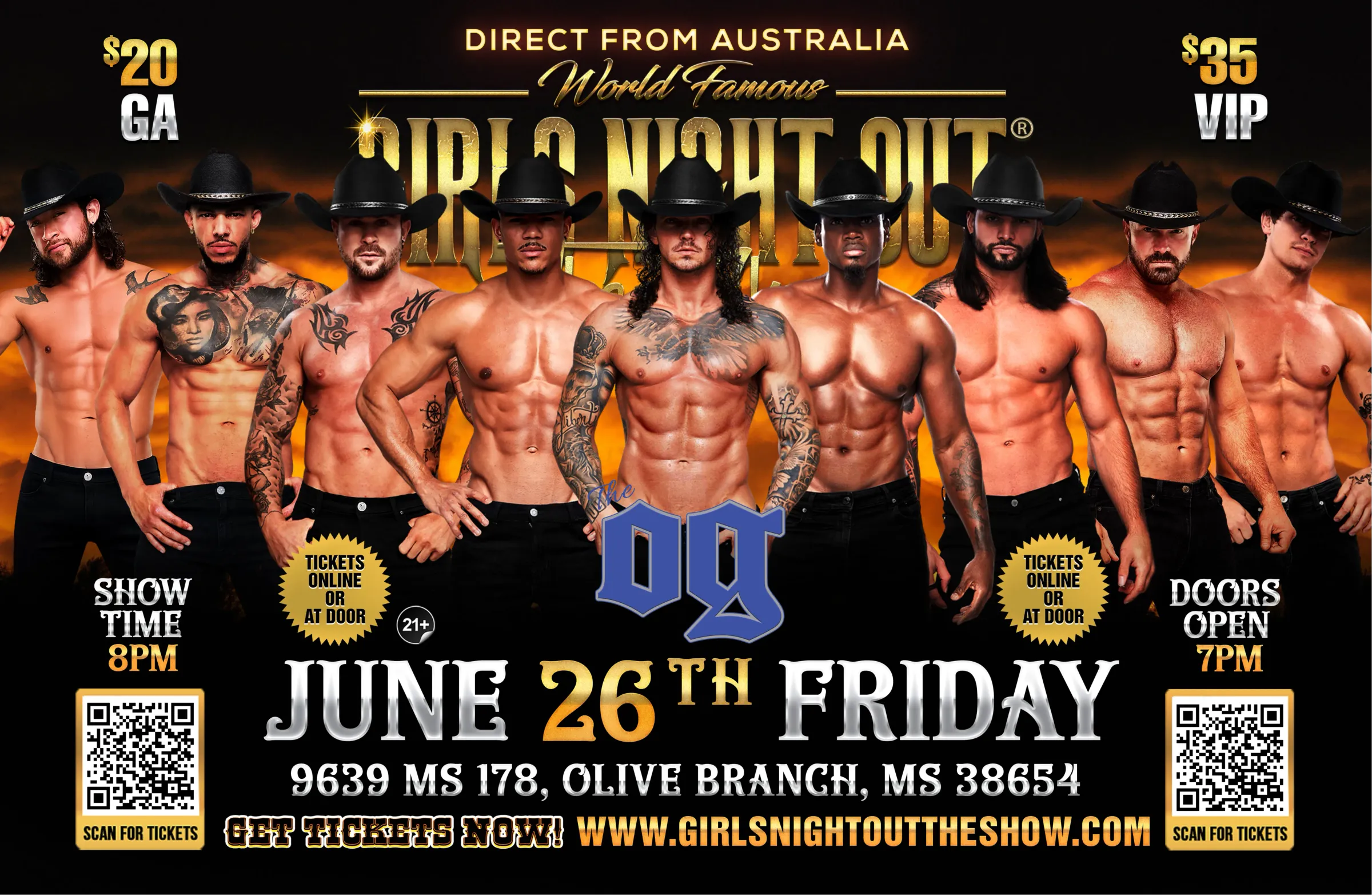 Girls Night Out the Show Live Australia WORLD TOUR is hitting Olive Branch ,MS for one night only! This is your chance to witness the Ultimate, high energy ,jaw dropping,pulse-racing show LIVE!