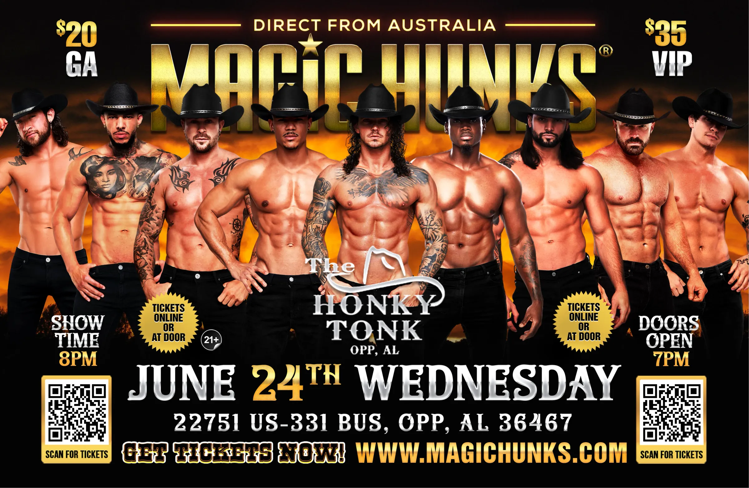 AUSTRALIA'S MAGIC HUNKS "WILD NIGHTS 2026" WORLD TOUR is hitting the stage at the Honky Tonk on Wednesday June 24th for one night Only!!