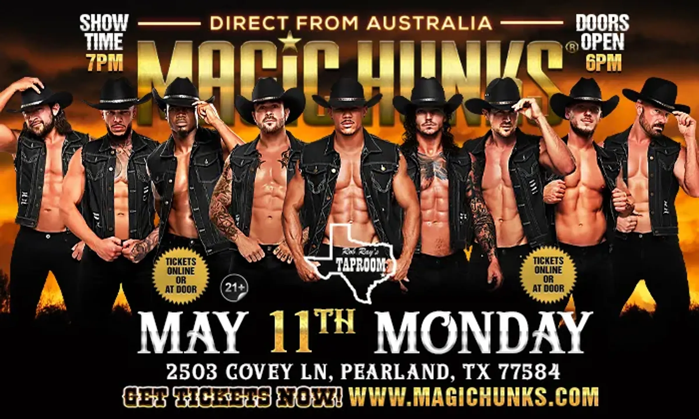 AUSTRALIA'S MAGIC HUNKS WORLD TOUR is hitting Rob Ray's Taproom on Monday May 11th for one night only !This is your chance to witness the Ultimate, high energy, jaw dropping,pulse-racing show LIVE!