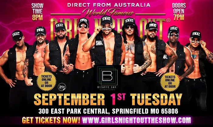 Girls Night Out Live Australia WORLD TOUR is hitting Springfield, MO for one night only! This is your chance to witness the Ultimate, high energy,jaw dropping,pulse-racing show LIVE!