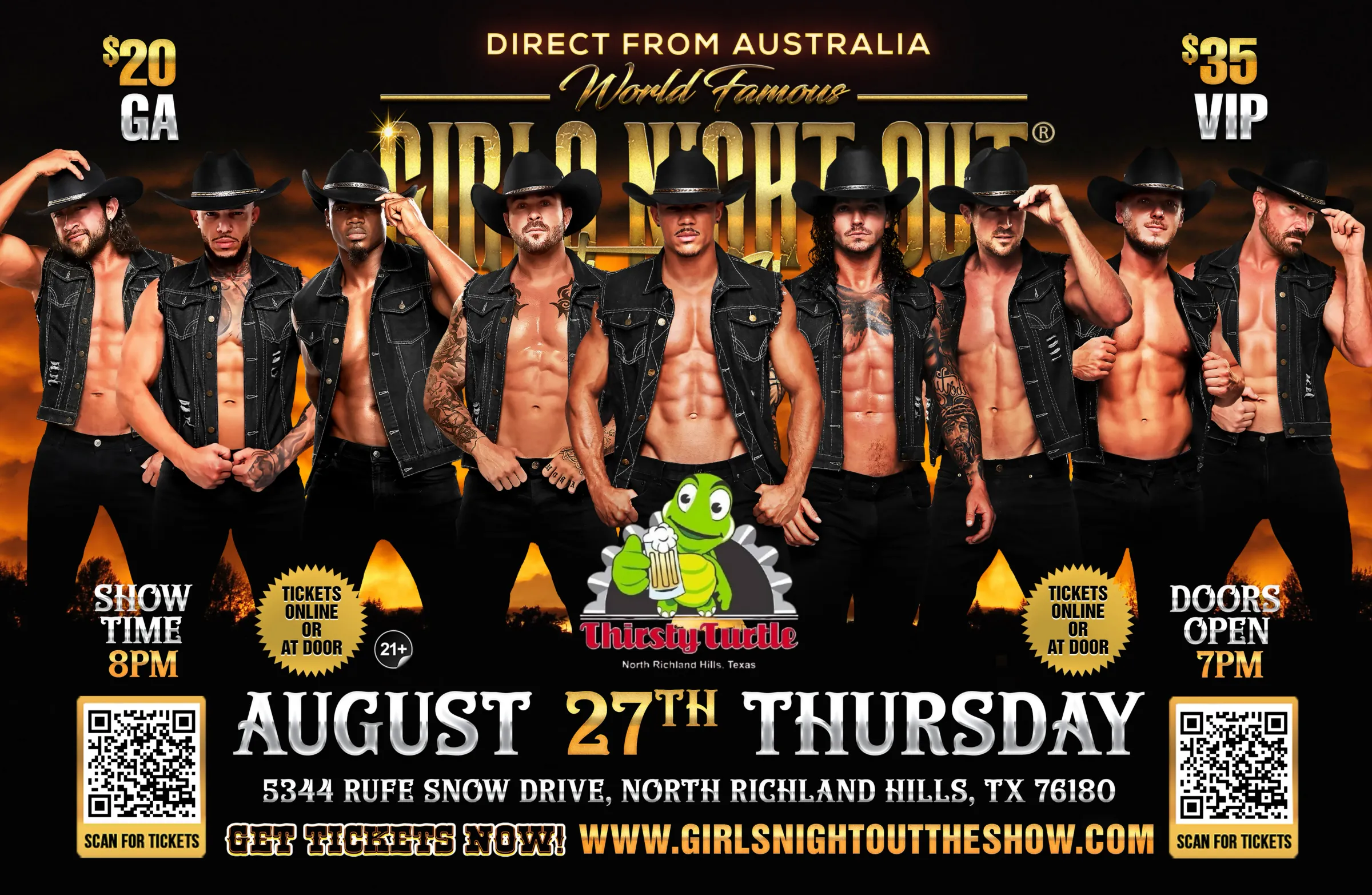 AUSTRALIA'S GIRLS NIGHT OUT THE SHOW "WILD NIGHTS 2026" WORLD TOUR is hitting the stage at The Thirsty Turtle on Thursday August 27th!!!
