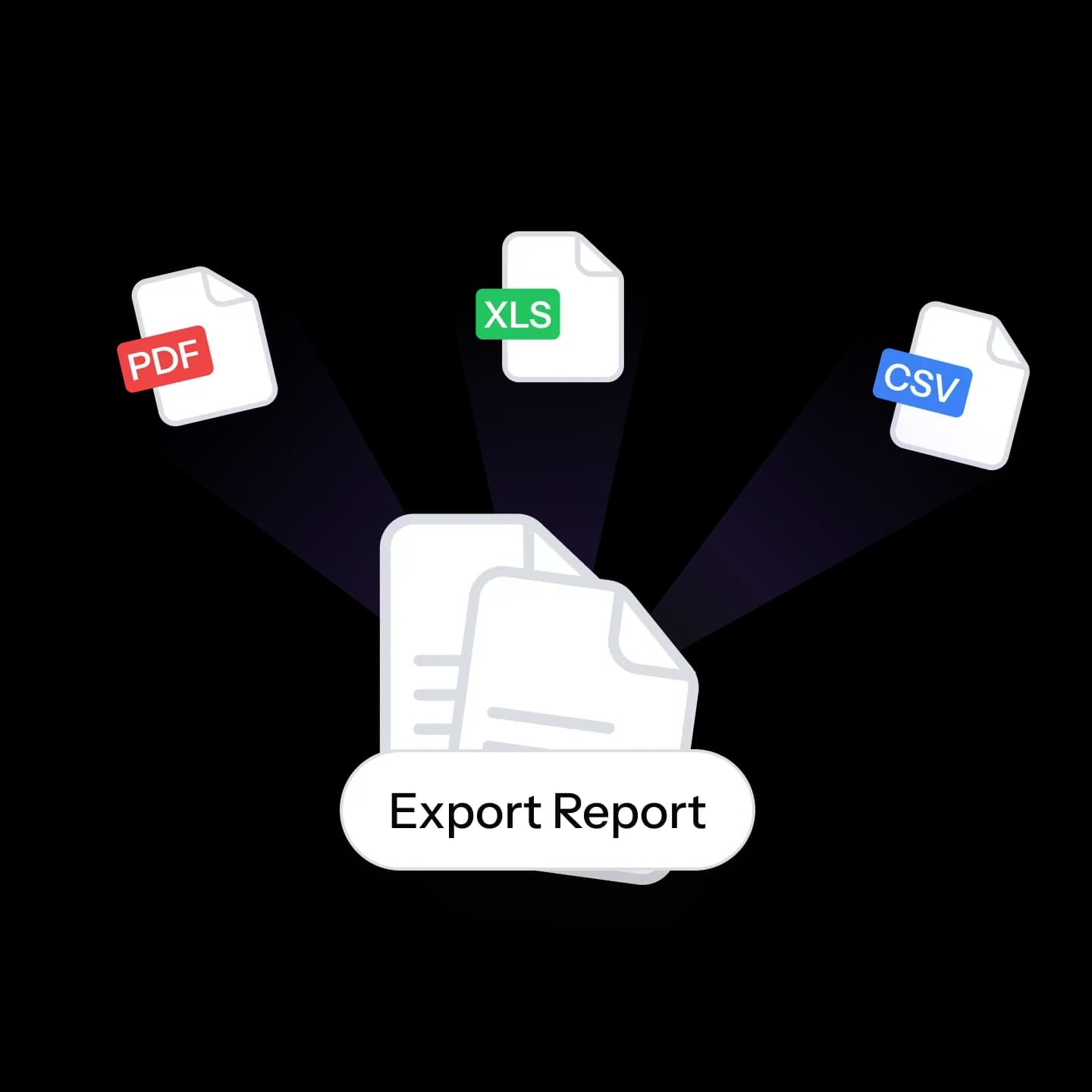 Export reports in CSV, XLS, or PDF—easy to share with your team and partners.