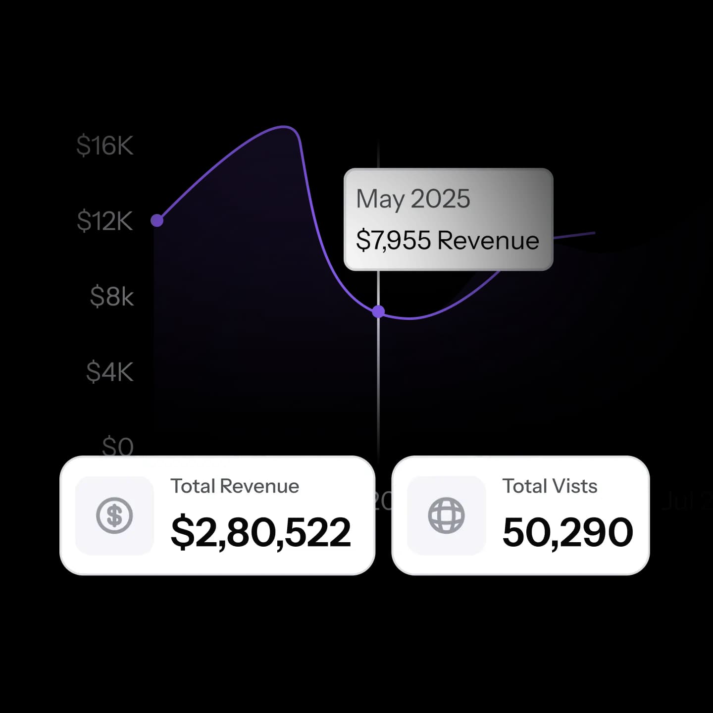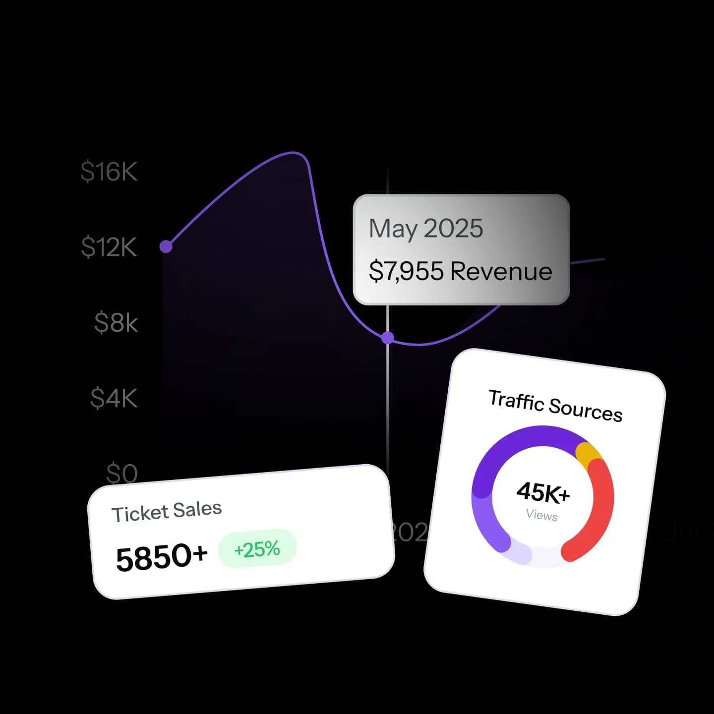Visualize your earnings with real-time revenue graphs to see how your events are performing.