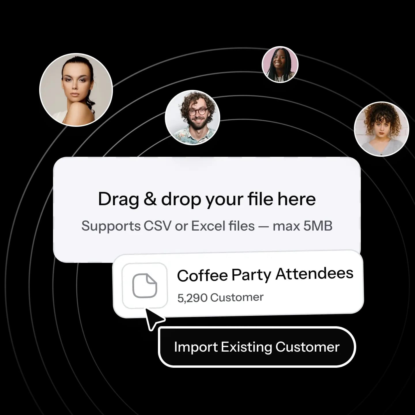 Import your audience in minutes by uploading a CSV or contacts list—seamlessly into Avenue.